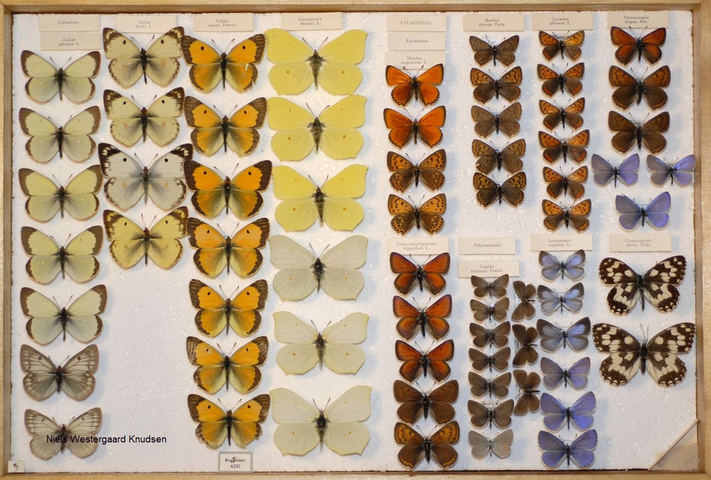 Niels samlede en stor samling af sommerfugle og natsværmere, ca. 4000 på nåle, fordelt på 65 samlekasser Du